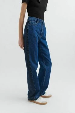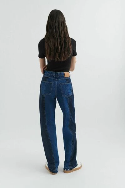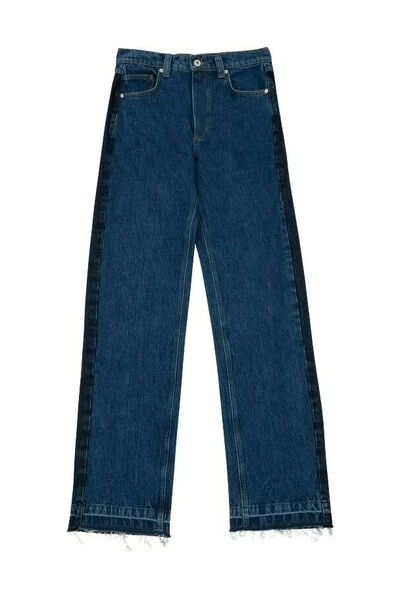 De hybride jeans worden samengevoegd van gedeeltelijk gerecyclede katoen-denim in twee verschillende wasbeurten. Gesneden in een rechte poten, ze zijn afgewerkt met een lederen achterste patch en subtiel gerafelde manchetten.