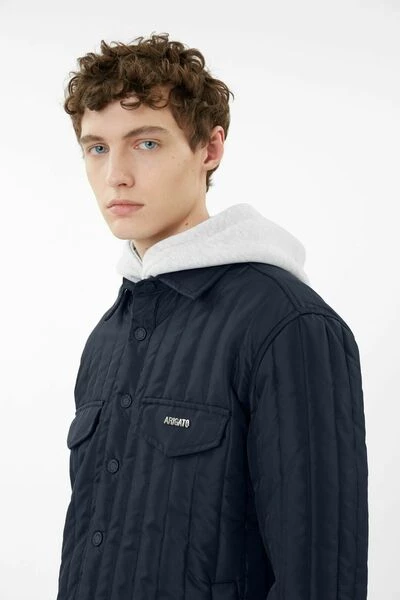 Het Tait Quilted Overshirt is een vernieuwde versie van het klassieke Tait Overshirt, nu met een gewatteerd oppervlak voor warmte en comfort. Het regular-fit overshirt is uitgerust met een zilver Arigato-logo op de borstzak en tonale drukknopen met logo. Felix is 187 cm / 62 ft en draagt maat M.