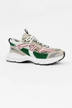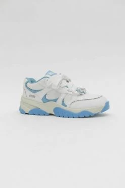 De Catfish sneaker is geïnspireerd op skateschoenen die eind jaren 90 populair waren. Dit paar is handgemaakt in Portugal van panelen van leer en mesh, en staat op dikke aangepaste thermoplastische rubberen zolen. De veters zijn geaccentueerd met verwijderbare kristallen versieringen.