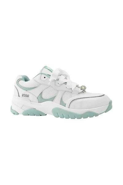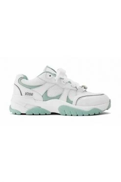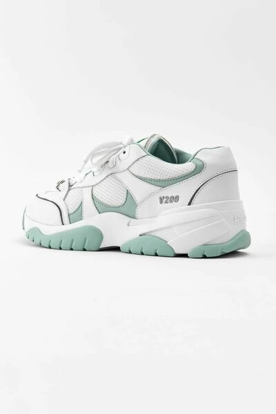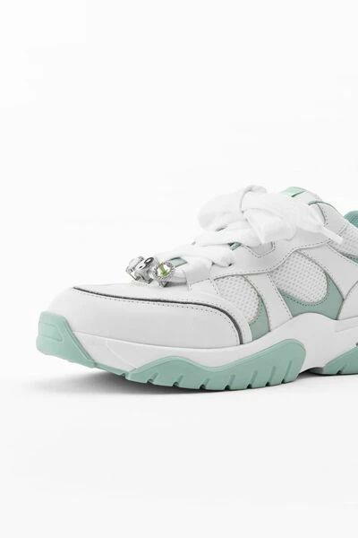 De Catfish Sneaker is geïnspireerd op skate -schoenen die in de late jaren 90 populair waren. Dit paar is handgemaakt in Portugal uit panelen van leer en gaas en is ingesteld op dikke op maat gemaakte thermoplastische rubberzolen. De veters zijn geaccentueerd met verwijderbare kristalversieringen.Deze beschrijving is automatisch vertaald.