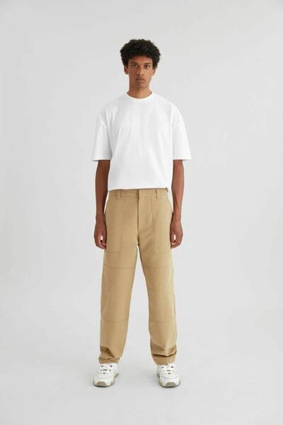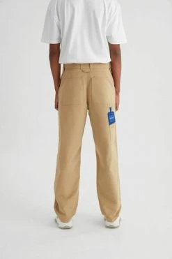 De Iron broek is gemaakt van katoen in een rechte pijpvorm. Geïnspireerd door werkkleding, hebben ze panelen op de knieën en zijn ze afgezet met een kenmerkend bagagelabel.