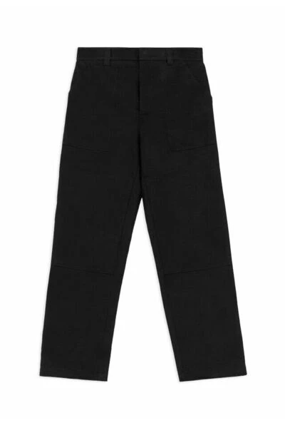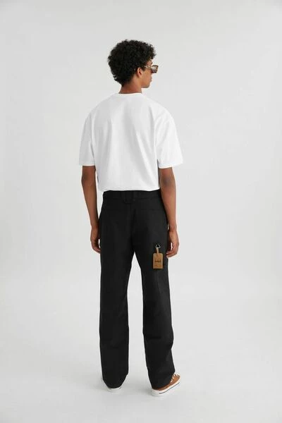 De Iron broek is gemaakt van katoen in een rechte pijpvorm. Geïnspireerd door werkkleding, hebben ze paneelstiksels op de knieën en zijn ze afgezet met een kenmerkend bagagelabel.Vincent is 186 cm / 61 ft en draagt maat M.