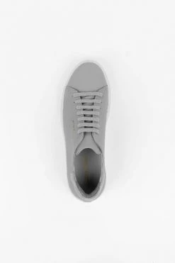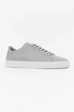 Axel Arigato lichtgrijze Clean 90 low top sneakers. Gemaakt van leer. Witte zool van rubber en lichtgrijs hiel detail van suède. Maximaal comfort dankzij gewatteerde hiel, uitneembaar gedempt voetbed en ondersteuning van de voetboog. Platte katoenen veters, goudkleurig metallic logo op zijkant.