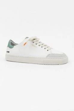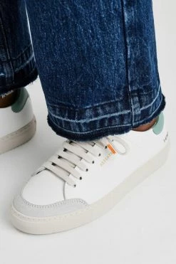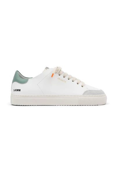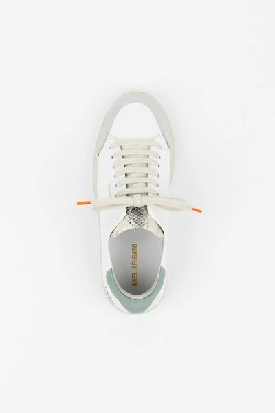 De handgemaakte schone 90 drievoudige sneakers zijn gemaakt met een Italiaans lederen bovenwerk van een goud gecertificeerde leerlooierij en volledige lederen voering. De rubberen zool bevat een mix van gerecycled en maagdelijk rubber voor duurzaamheid en duurzaamheid. De witte sneaker heeft contrastdetails in groene en slangenprint op tong- en hieltabblad.