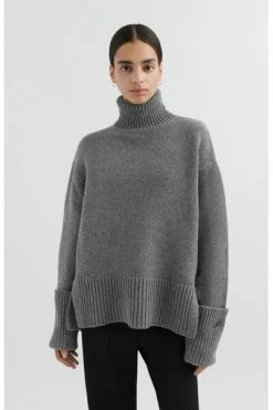 De resterende Turtleneck-trui is gebreid van een merinowol en kasjermijnmengsel die met name zacht en warm is. Een van de gevouwen manchetten heeft onze handtekening en de zoom is gesplitst om het ontspannen silhouet te accentueren. Deze trui wordt in een extra grote pasvorm gesneden.