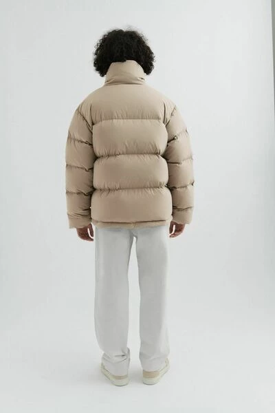 Deze jas past precies op maat. Het Halo Jacket is gemaakt van lichtgewicht gerecycled polyester, gevuld met hergebruikt dons en veren, en voorzien van een gezeefdrukt logo. De jas is ontworpen om warmte vast te houden en heeft een hoge trechterkraag en verborgen manchetten met drukknopen. De jas wordt geleverd met een bijpassende zak om hem gemakkelijk op te bergen.