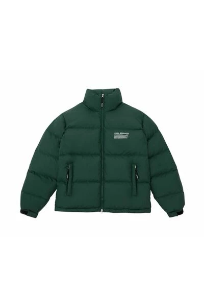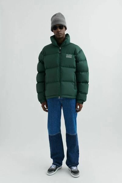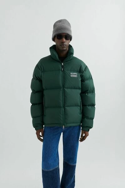 De Observer puffer jacket is gemaakt van lichtgewicht gerecycled polyester dat doorgestikt is om de hergebruikte dons en veren gelijkmatig te verdelen. Het heeft een zeefdruk op de borst, een opstaande kraag en verstelbare manchetten met klittenbandsluiting om de warmte vast te houden. T