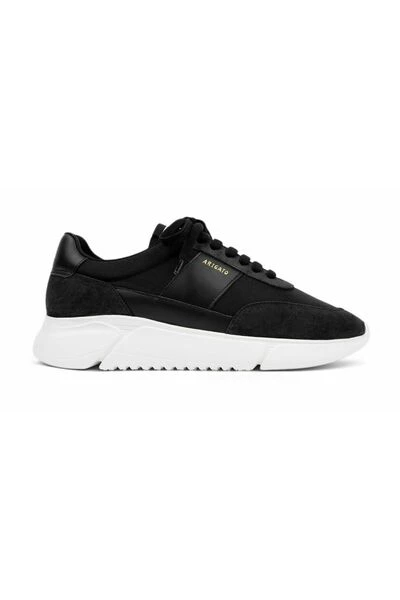 Handgemaakt in Portugal, de zwarte Genesis Vintage Runner Axel Arigato sneakers. Geïnspireerd door retrostijl. Op een lichtgewicht zool met een gestroomlijnde vorm. Verantwoord vervaardigd met behulp van gerecyclede PET-flessen en SEAQUAL® MARINE PLASTIC, gemaakt van plastic zeeafval van SEAQUAL INITIATIEF. Veterconstructie. Laag uitgesneden bovenwerk. Goudkleurige merklogo-stempel aan de zijkant van het bovenwerk. Afmetingen: Zool Hoogte: 3,2 cm