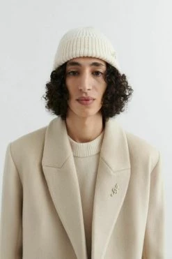 De Signature beanie is ribgebreid van een zachte en soepele wolmix. De gevouwen manchet wordt geaccentueerd door onze Signature A pin, die is ontworpen in een schriftachtig lettertype.