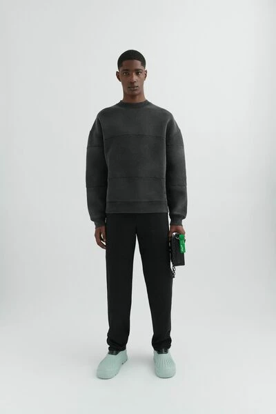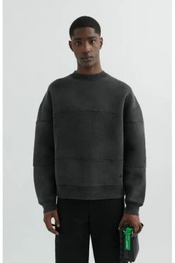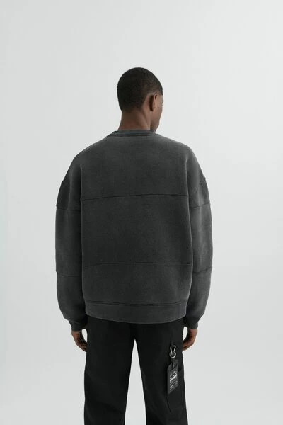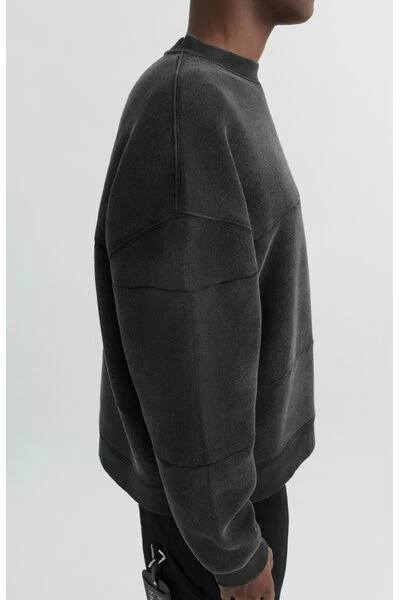 Het fade sweatshirt is gesneden van biologisch katoen dat een uniek vervenproces heeft ondergaan om het een oude favoriet te geven. Het heeft een los, ontspannen profiel met horizontale naden door het lichaam en de mouwen. Wees voorzichtig bij het wassen van dit stuk. Dit sweatshirt wordt gesneden in een oversized fit. Diogo is 187 cm / 6′1 ft en draagt een maat M.