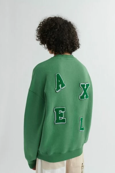 Het illusie sweatshirt wordt gesneden van GOTS-gecertificeerd biologisch katoen in een ontspannen bemanningsprofiel. Het beschikt over een ‘Londen’ -pen en is Appliquéd aan de achterkant met tweekleurige Terry Letter Patches die ‘Axel’ spellen. Dit sweatshirt wordt in een extra grote pasvorm gesneden.