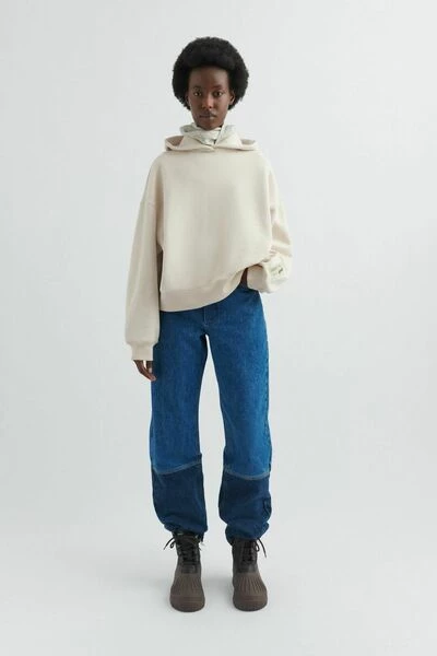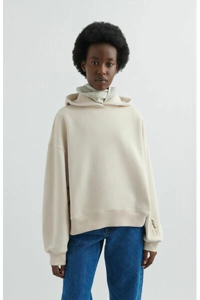 De lokale hoodie is gemaakt van GOTS-gecertificeerd biologisch katoen en heeft een ontspannen silhouet. Het is geborduurd net boven de geribbelde zoom met de letter ‘A’ in tonale draden en heeft een logo -patch bij de manchet. Deze hoodie is gesneden in een extra grote, boxy fit.