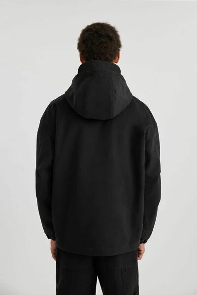 De metrische anorak is gemaakt van katoen en heeft een ontspannen profiel, afgewerkt met een beschermende capuchon en een verstelbaar trekkoord door de zoom. Het is ontworpen met verlaagde schouders om ervoor te zorgen dat het comfortabel over elkaar ligt.Toumane is 186 cm / 61 ft en draagt maat M.