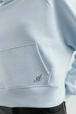 De Rio bijgesneden hoodie presenteert een nieuw vrouwelijk ontwerp voor de verzameling hoodies. Het enigszins boxy silhouet beschikt over spleten in de zijkaad en een asymmetrische snit op de voor- en achterkant. De monochrome stijl is gedetailleerd met de bovenkant van de mouw Cutlines en een verwijderbaar script “A” Pin.Eugenia is 179 cm / 5 9 ft en draagt een maat S.