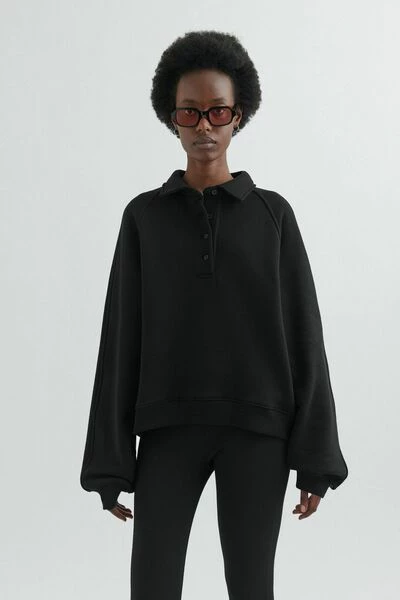 Het Sunday Colo Sweatshirt bestaat uit GOTS-gecertificeerde biologische katoen en geborduurd met de ; Arigato ; -Logo. Als het klassieke polo -stijlen beïnvloedt, heeft het een fatsoenlijke puntkraag en een mooie knopstekker.