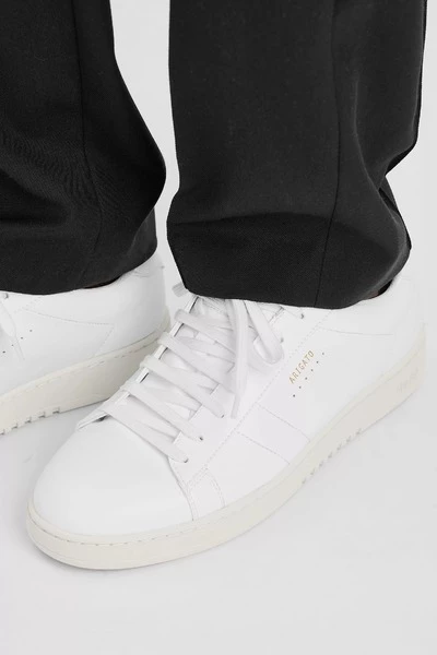 Witte Hooper witte sneakers van Axel Arigato in leer met ronde neus, voorsluiting met witte veters, zijlogo en platte rubberen zool. Materiaal: Bovenwerk: 100% biobased PU; Voering: 100% gerecycled polyester Productstijl-ID: F0425001 Deze beschrijving is automatisch vertaald.