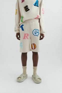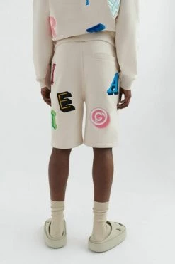 De Inferno-shorts worden gesneden uit GOTS-gecertificeerde organische katoen die appliquéd met patches is-elk wordt gesneden uit felgekleurd vilt en begrensd door satijnen stikranden. Dit ontspannen pitpaar is gegarneerd met een flexibele elastische tailleband.
