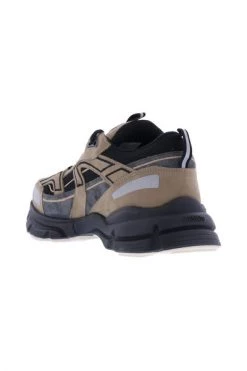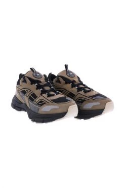 Brown Marathon R-Trail Sport Sneakers van Axel Arigato. Zwarte en grijze details. Ondertekend met de merknaam. Veter. Onregelmatig gevormd, verhoogde zool.