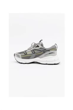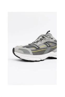 Marathon R-trail sneakers hebben een gedurfde combinatie tussen sport en casual, waardoor je verschillende outfits kunt combineren en toch je eigen stijl hebt. Met rubberen logo op de tong en contrasterende decoratieve zwarte en gele onregelmatige lijnen op de zijkant.