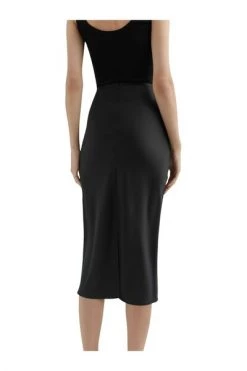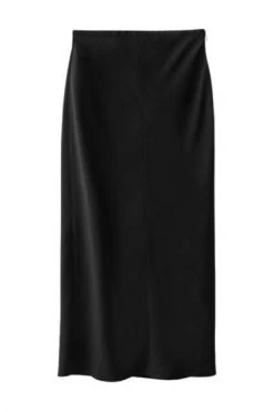 De kenmerkende rok is gesneden uit zijde met een gladde, vloeiende drapeer. Ontworpen om hoog op de taille te zitten en onder de knie te vallen, het is subtiel gedetailleerd met a borduurwerk.