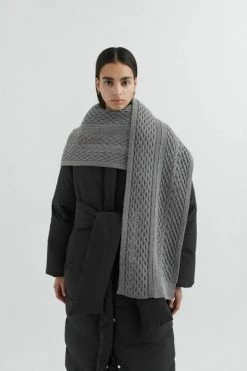 De Londense sjaal is gebreid van een wollen mix met behulp van een combinatie van verschillende kabel steken. Het is afgewerkt met tonaal borduurwerk en onze arigato -pin.Deze beschrijving is automatisch vertaald.