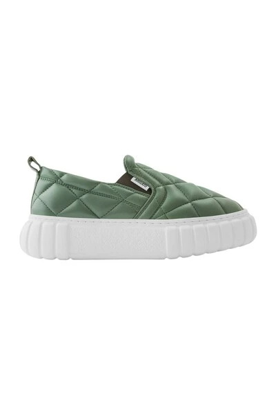 De Haze Sneaker combineert een klassiek slip-on-bovenwerk met een eigentijdse opgeblazen zool. Dit paar is handgemaakt van gewatteerd leer en bio-gebaseerde EVA die gedeeltelijk is gemaakt van suikerriet. Elastische inzetstukken en een treklipje bij de hiel zorgen ervoor dat ze gemakkelijk in- en uitschakelen zijn.