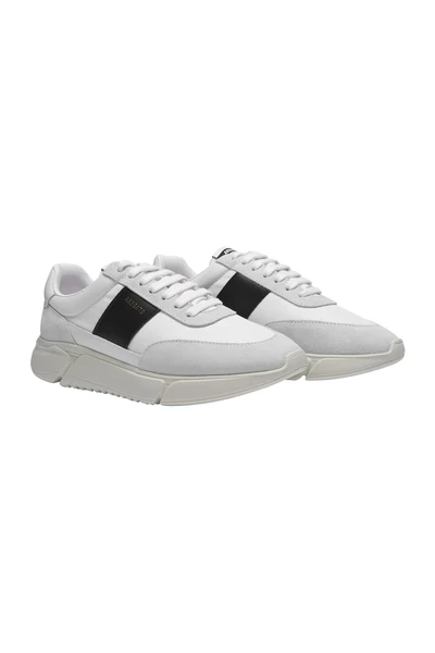 De kenmerkende minimalistische esthetiek van het Axel Arigato -label krijgt een retro make -over met de Genesis Vintage Runner. Ze zijn gedeeltelijk gemaakt van gerecyclede plastic flessen en polyester en hebben een dikke zwarte band aan de zijkant met het Logo van het Zweedse label. We raden je aan ze te dragen met bijgesneden broek, een hoodie en een lange parka. Hiel: 3,2 cm. Kleur: Blanc – Wit/zwart. Hoofdmateriaal: PES Gladde kalfsleer. Sole: Rubber. Voering: polyester. Sluiting: topvetjes. Toe vorm: puntig.