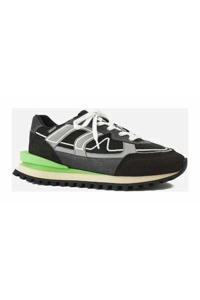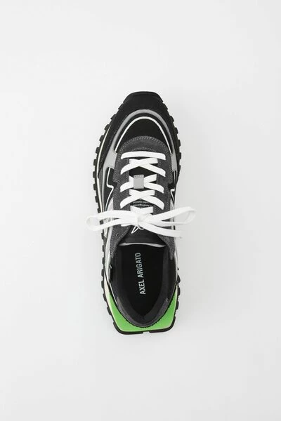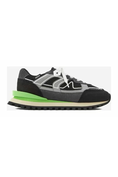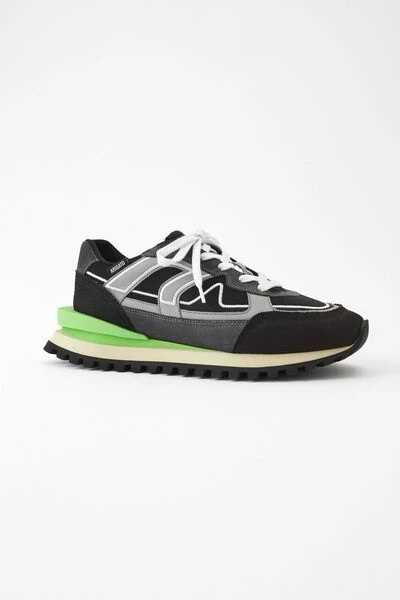 De Sonar Sneaker haalt inspiratie uit de jaren `70 hardlopers en heeft een grafisch low-top profiel. Handgemaakt in Portugal, zijn de bakschulden gemaakt van een combinatie van leer, suede en canvas. De gelaagde zolen hebben een contrastspoiler en worden onderbouwd door een loopbiedsool.