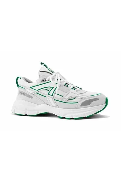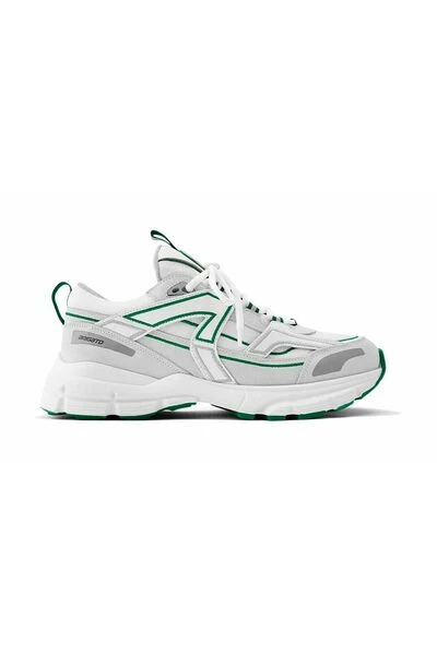 Handgemaakt in Portugal 75% leer / nubuck / suede, 25% PES -voering in technisch gaas: 100% PE`s met niet -slip details bij de hiel. De gepersonaliseerde thermoplastische plastic rubberen zool meet 3,5 cm aan de achterkant en 2,5 cm aan de voorkant. 1 cm loophoogte De gekwileerde verwijderbare zool biedt dagelijks comfort in het dagelijkse ontwerp reflecterende rubber label van het merk Marathon Brand gerecycled polyester kleur: witte/boerenkool groen ref: F0568001