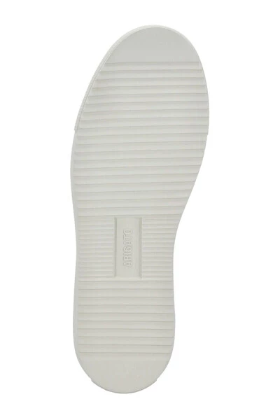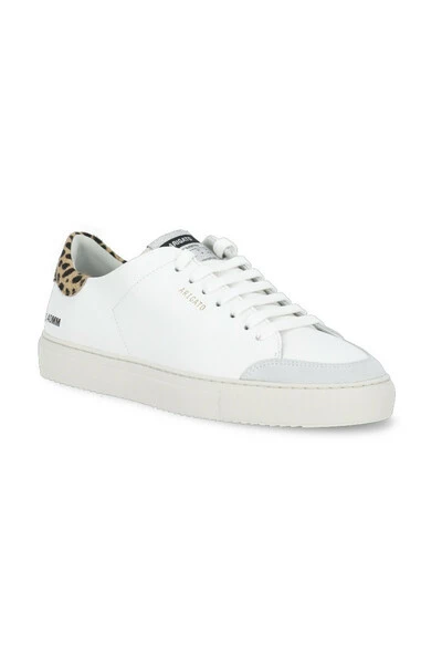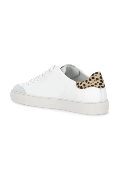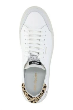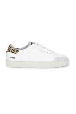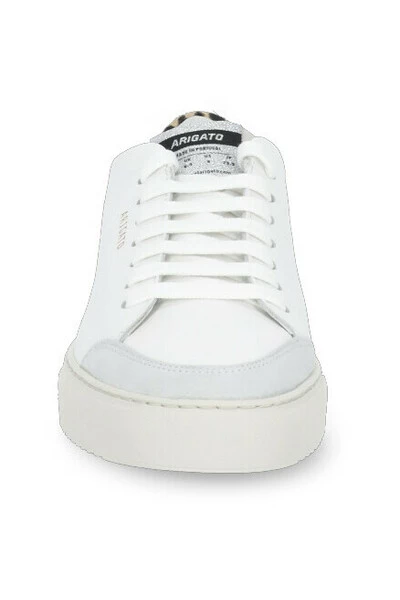 Axel arigato – witte axel arigato gladde lederen sneakers voor vrouw – suede lederen ronde teen -voorste toon op toon veters bevestigen – Glittered arigato tab bij tong – golden contrasterende kleur arigato logo – cowhair bovenste hak – verkocht met reserveveen – platform rubber sole ( 3 cm)