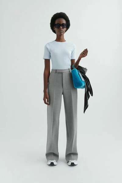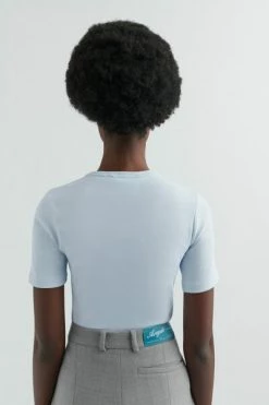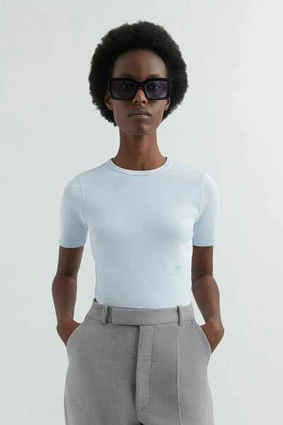 Het kenmerkende slanke T-shirt biedt een verhoogde slanke pasvorm voor ons bereik van T-shirts. De korte mouw wordt geleverd met een geribbelde structuur en een discrete tonale handtekening “A” borduurwerk aan de onderkant. Jennifer is 176 cm/ 5 8 ft en draagt een maat S.