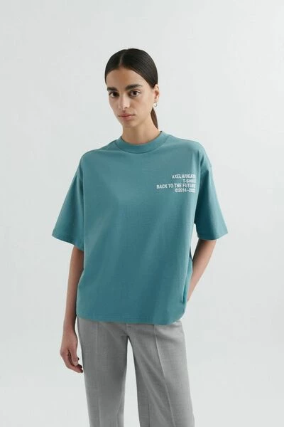 Het T-shirt van het bemanning van de nek is gesneden van GOTS-gecertificeerde organische katoen. Het beschikt over een samengevoegd logo, samen met de kenmerkende ‘Back to the Future’ slogan aan de voorkant.