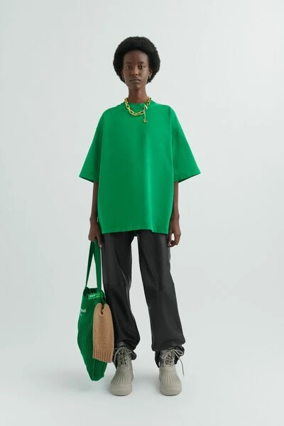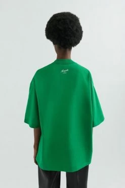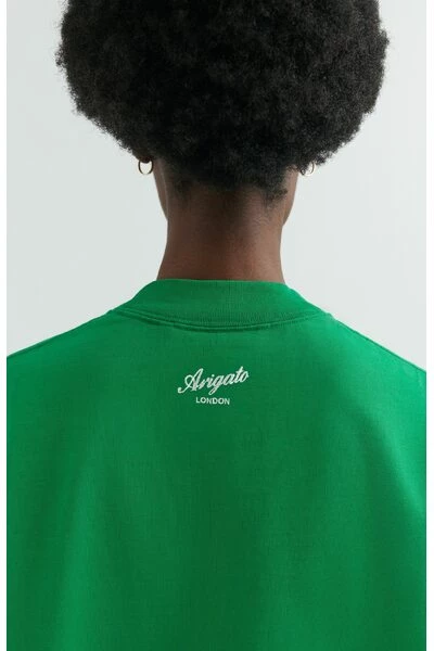 Het formule T-shirt wordt gesneden van GOTS-gecertificeerde organische katoen in een los, oversized silhouet. Het beschikt over subtiele ‘arigato’ logo -borduurwerk aan de achterkant, net onder de hals van de bemanning.