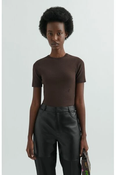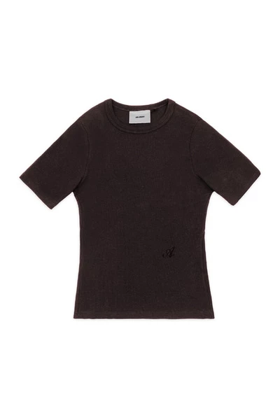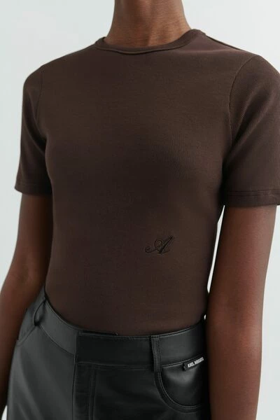 Het kenmerkende slanke T-shirt biedt een verhoogde slanke pasvorm voor ons bereik van T-shirts. De korte mouw wordt geleverd met een geribbelde structuur en een discrete tonale handtekening “A” borduurwerk aan de onderkant. Jennifer is 176 cm/ 5 8 ft en draagt een maat S.