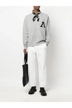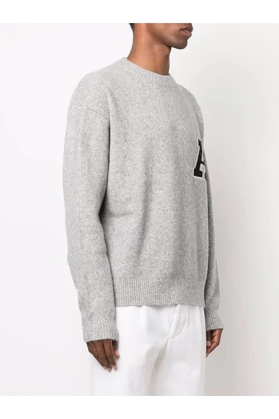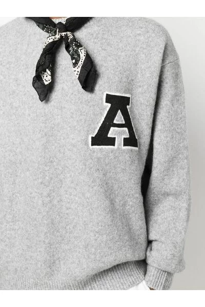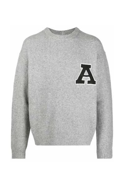 Axel Arigato Sweaters Grijs Gray Gray Yak-Wool Blend Chest Logo-Patch Sweatshirt van Axel Arigato met geribbelde detaillering, mélange-effect, logo-pleister aan de borst, ronde nek en lange mouwen.Deze beschrijving is automatisch vertaald.