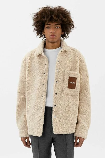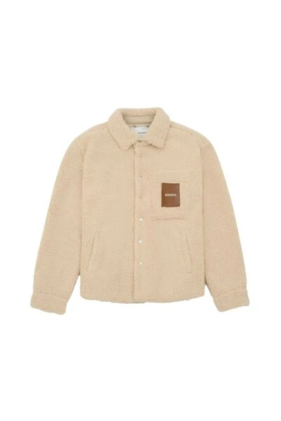 Het Aspen Teddy Overshirt is gemaakt van een comfortabele polyester poolstof met fluwelen achterkant. Het overshirt is ontworpen met een klassieke kraag, zilverkleurige metalen drukknopen en een PU-leren label op de borstzak met zilver Axel Arigato-logo.Omari is 183 cm / 6 ft en draagt maat M.