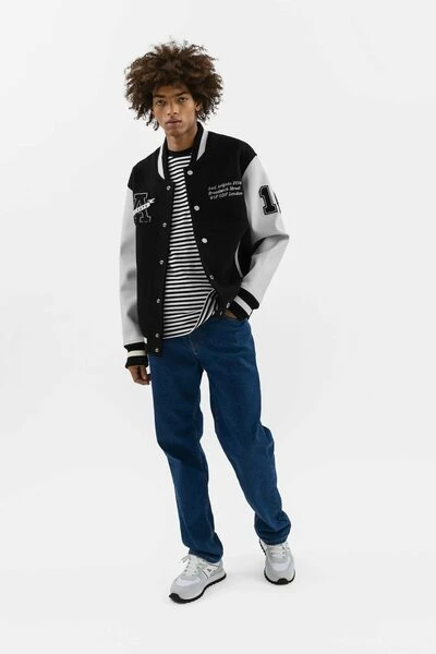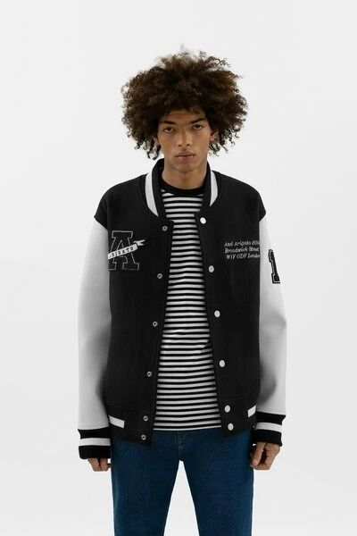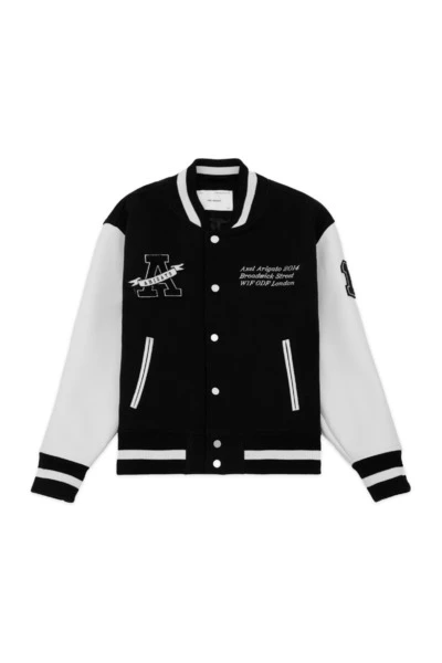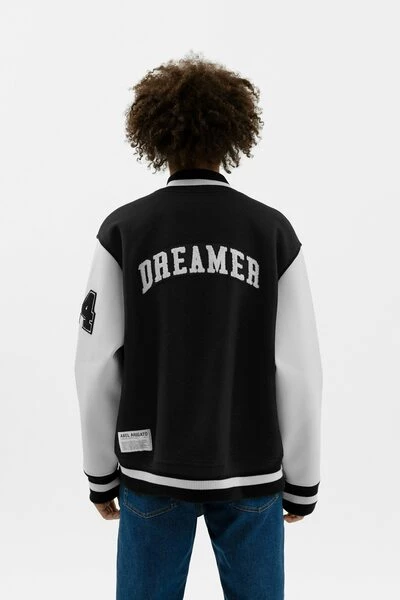 De dromer varsity bomber presenteert een bijgewerkte versie van onze homeschool varsity bommenwerper, ontworpen met inspiratie uit onze universiteitsjaren. De bommenwerper is vervaardigd met behulp van een zware wolstof met contrastmouwen in veganistisch leer. Aanvullende details zijn onder meer Arigato Branded Press -knoppen in zilver, een oversized varsity Terry * A * Patch en bijgewerkte geborduurde graphics.omari is 183 cm / 6 ft en draagt een maat M.