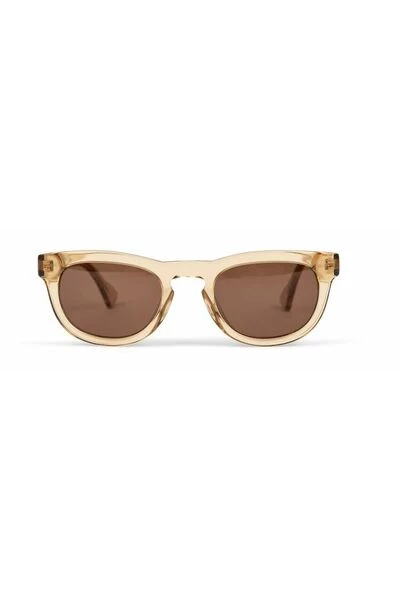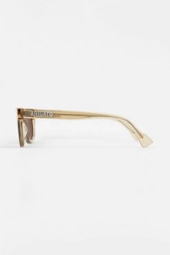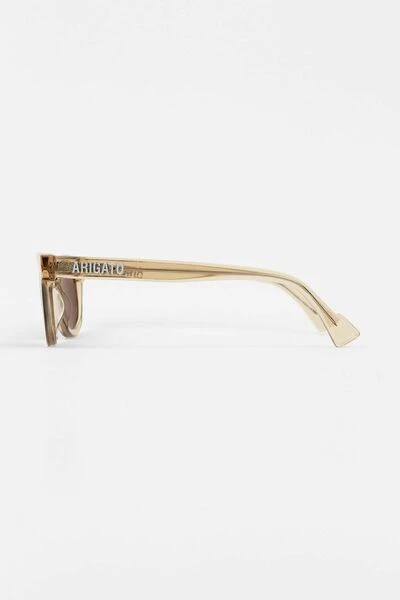 We presenteren de Alton zonnebril met D-frame, gemaakt van transparant beige celoseacetaat. De zonnebril heeft bruine lenzen met 100% UV-bescherming en een hoogwaardig scharnier dat de voorkant met de tempel verbindt, afgewerkt met gegraveerd Arigato-logo op beide tempels.