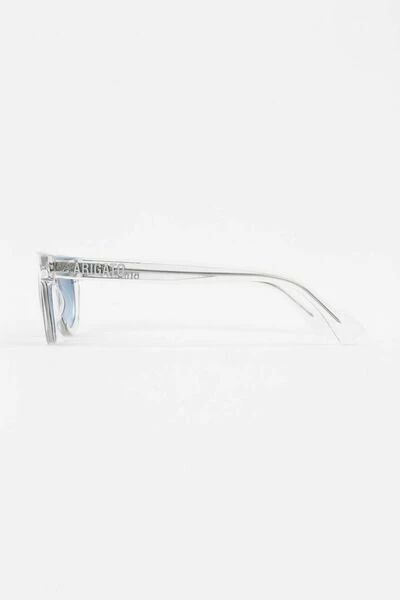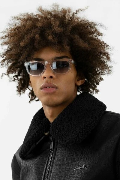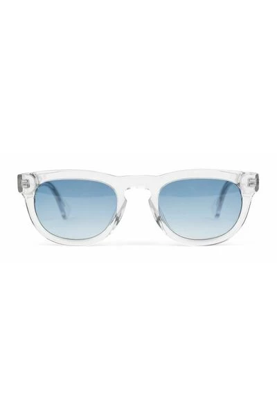We presenteren de Alton zonnebril met D-frame, gemaakt van helder kristalceloseacetaat. De zonnebril is voorzien van vervagende blauwe lenzen met 100% UV-bescherming en een scharnier van hoge kwaliteit dat de voorkant met de tempel verbindt, afgewerkt met gegraveerd Arigato-logo op beide tempels.