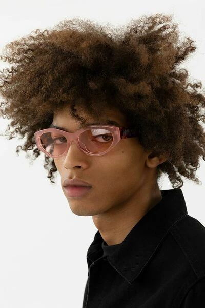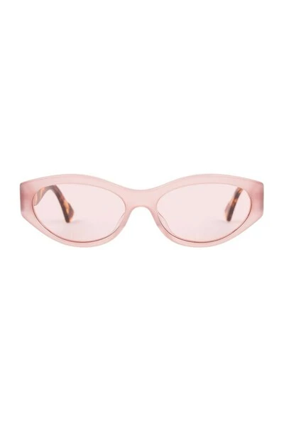 We presenteren de Tonia Cat-Eye-zonnebril gemaakt van melkachtig roze celoseacetaat. De zonnebril heeft roze lenzen met 100% UV-bescherming en een hoogwaardig scharnier dat de voorkant met de tempel verbindt, afgewerkt met gegraveerd Arigato-logo op beide tempels.